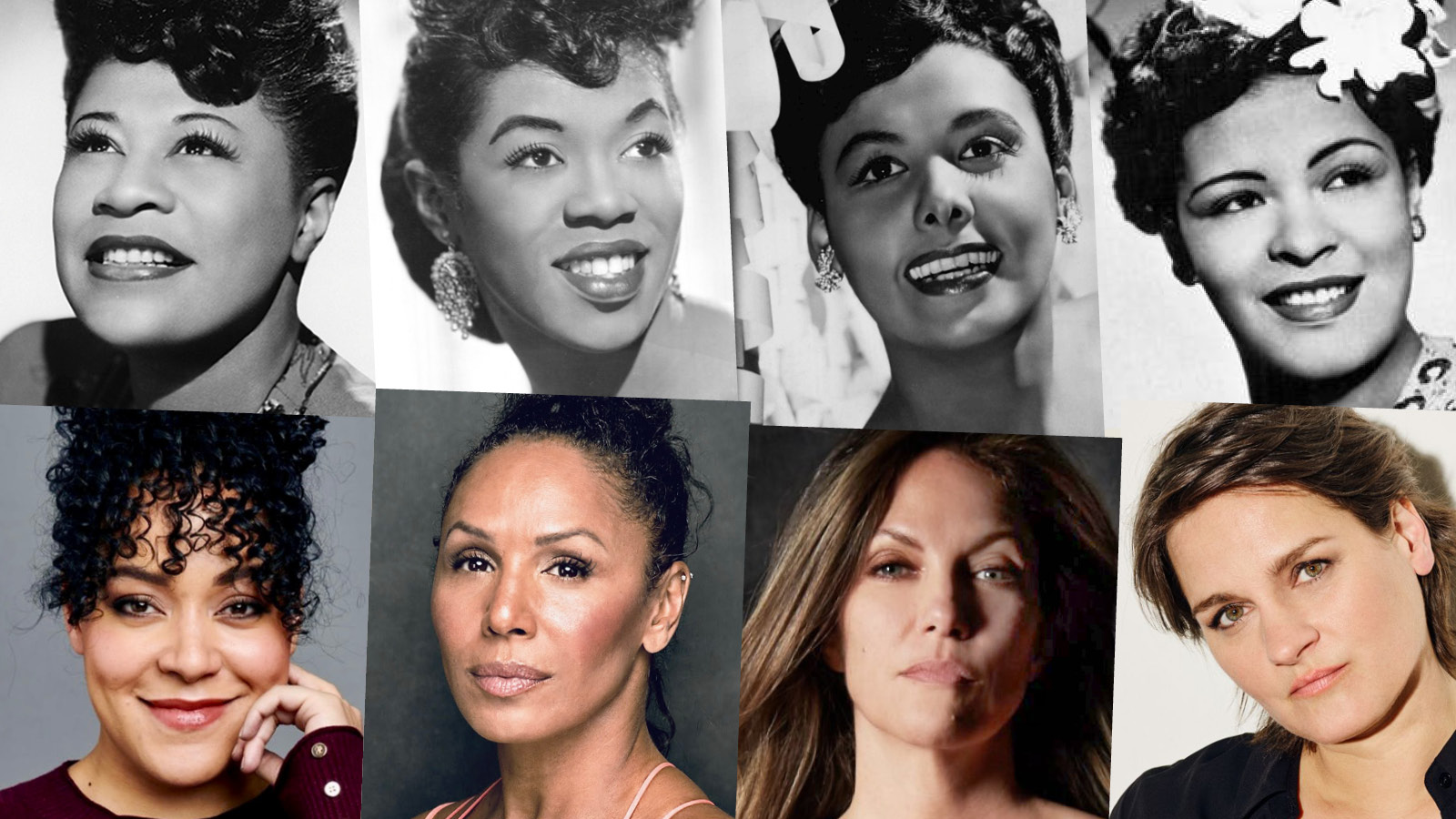 Top left: Ella Fitzgerald, Sarah Vaugh, Lena Horne, and Billie Holiday. Bottom left: Lilli Cooper, Maya Days, Hilary Kole, and Madeline Peyroux.